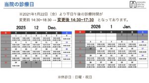 2021年1月22日(金)より、平日午後の診療時間を