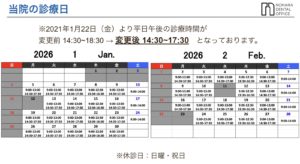 2021年1月22日(金)より、平日午後の診療時間を